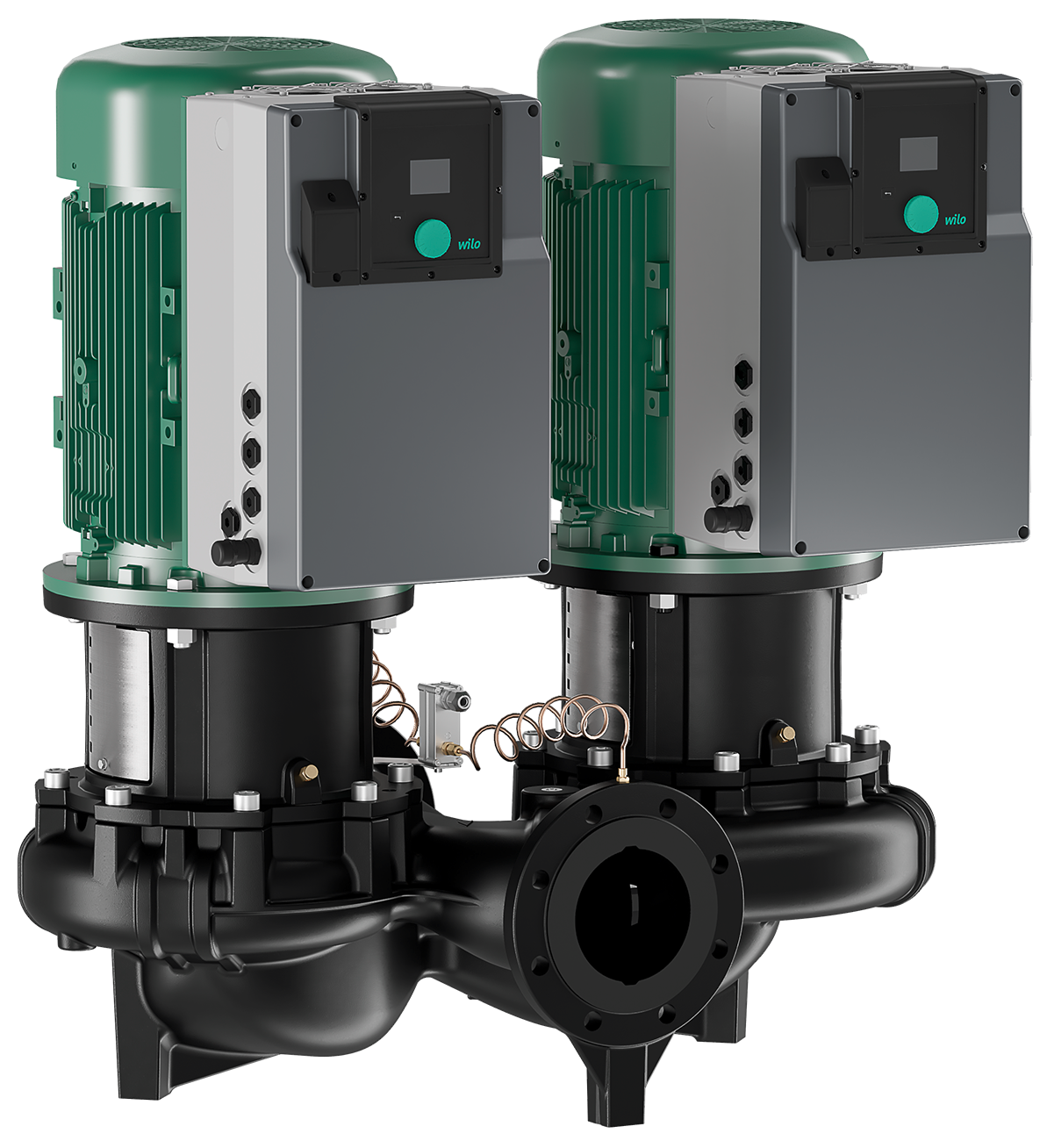 Elektronski regulisane dupleks pumpe sa suvim rotorom modela inlajn sa prirubničkim priključkom i automatskim prilagođavanjem snage.